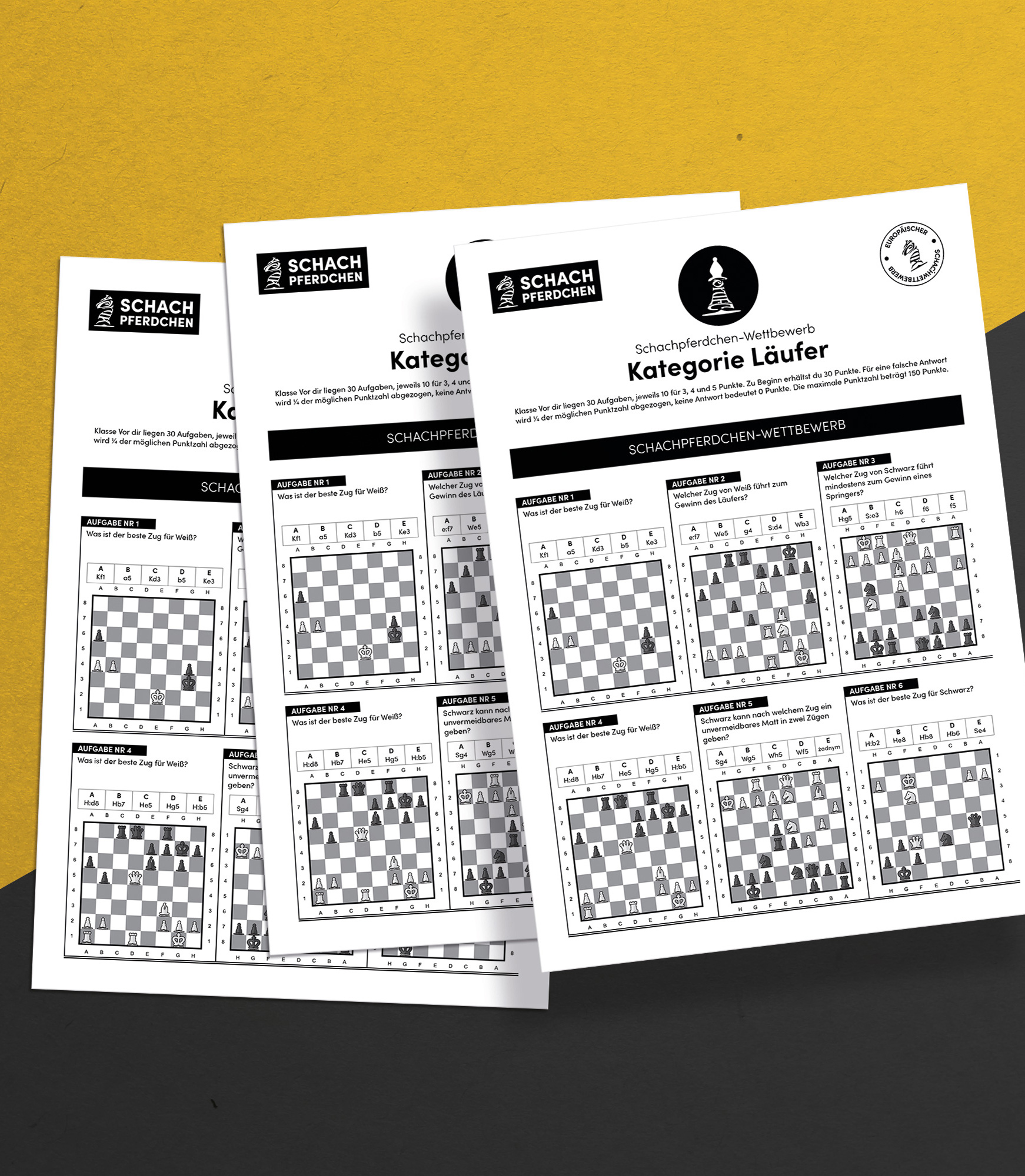 Die Aufgabenkarten enthalten 30 Schachaufgaben unterschiedlichen Schwierigkeitsgrades, angepasst an das Alter und Niveau der Teilnehmer. Der KURIER liefert diese Karten einige Tage vor dem Termin in der Schule ab.